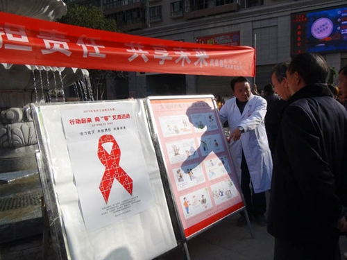 2015年12月1日是第28个“世界艾滋病日”, 为宣传普及艾滋病防治知识,提升广大群众防病意识,岚皋县疾控中心围绕这一主题开展了一系列的宣传活动。11月30日该中心在县疾控中心、县医院、县中医院、县职业中学、岚皋中学等地张贴艾滋病宣传海报30张;12月1日中午在广场开展了大型的咨询活动,悬挂大型横幅标语2副、展出宣传展板4块、发放安全套4000只、宣传资料4种1100份、播放音频2小时、电子显示屏滚动播放防治知识56个小时,历时2天。当日活动现场群众络绎不绝,工作人员细致地向群众讲解艾滋病防治知识,博得了群众的称赞。