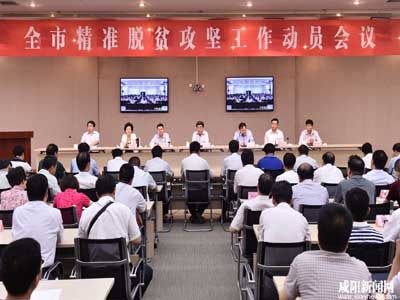 日前,咸阳市精准脱贫攻坚工作动员会议召开,市委书记岳亮出席并讲话。他强调,要以改革创新精神谋划脱贫工作,以法治思维和法治方式落实脱贫措施,全力提升脱贫攻坚工作实效,决不让一个群众在全面建成小康社会中掉队落伍。