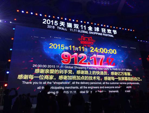 11月12日凌晨消息,阿里巴巴刚刚公布了“双十一”全天的交易数据:天猫双十一全天成交金额为912.17亿元,其中在移动端交易额占比68%,232个国家参与进来,物流订单量4.67亿。
