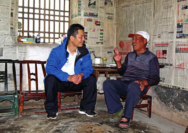 紫阳县委书记王晓江在城关镇青中村与困难群众亲切交谈,了解致贫原因,研究脱贫之策。 陈刚摄