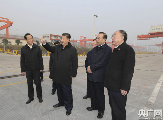 重庆1月5日消息 习近平总书记4日下午来到重庆果园港考察,听取长江上游航运中心建设、铁路公路水路联运等情况介绍,察看正在作业的集装箱船。听说渝新欧国际铁路沿线国家实现一次报关查验、全线放行,他赞赏“挺好”。看到港口设施齐备,已初具规模,他说:“这里大有希望。”
