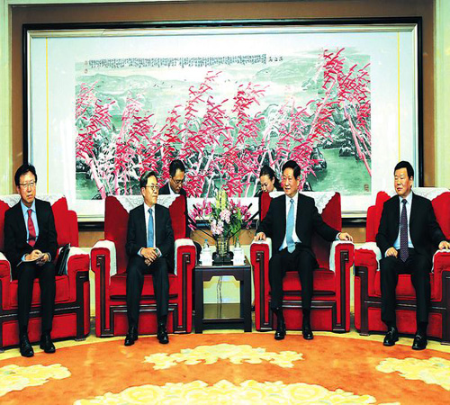 10月15日下午,省委书记赵正永、省长娄勤俭在西安会见了韩国三星集团未来战略室社长金钟锺一行。