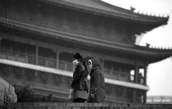 2日古城寒意浓,最低温降至今秋以来最低值,仅2.8℃。昨天是另外一番景象,关中大部遭遇雾霾袭击,雾霾警报拉响。5日起,我省迎来较大范围雨雪天气。2日,早起外出的人们明显感觉到寒意十足,手放在外面有些冷,一些人戴上了手套,或者把手装进兜里。呼出的白气让人觉得,冬天的脚步真的很近了!昨天,古城少了2日的寒冷,却多了雾霾缭绕,能见度比较差,“没过几天晴朗的好日子,又遭遇霾伏!”不少人感慨称。