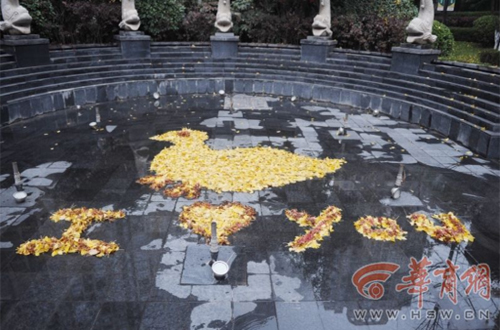 西安一小区保洁员用落叶作画 被称最美保洁员