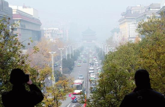 “世界上最远的距离,不是生与死的距离,而是我在西安街头牵着你的手,却看不见你。”“在古城,你才会知道什么叫做会呼吸的痛。”“厚德载‘雾’,自强不‘吸’。”“空气如此糟糕,引无数美女戴口罩。”朋友圈内,关于对雾霾天的调侃再度升温。