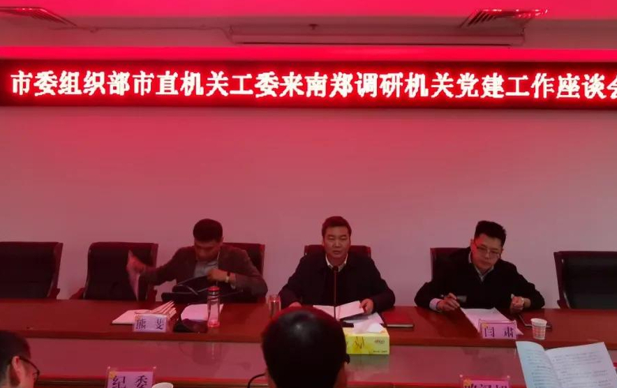 10月15日,汉中市直机关工委纪工委书记皇少君一行到南郑区调研机关党建工作,市委组织部、市直机关工委有关同志一同参加调研。